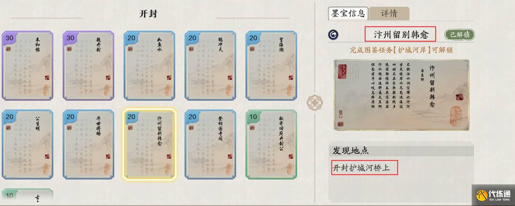 天涯明月刀手游汴州留别韩愈图鉴位置介绍