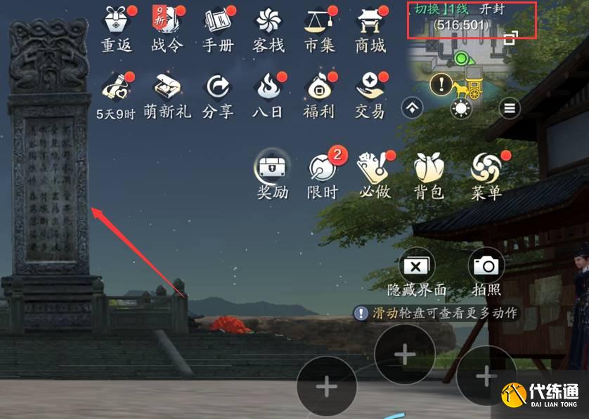 2、玩家可以前往开封(516,501),具体位置如下图所指,就能够在这里找到汴州留别韩愈的墨宝图鉴了。