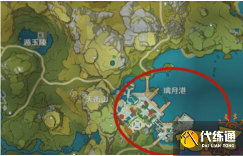 原神璃月新地图位于世界地图的南端,大致区域如地图所示,注意璃月港并没有解锁的硬性条件,就算冒险等级是一级,都可以直接走到这里,启动红圈位置的七天神像之后就能解锁璃月港地图了。