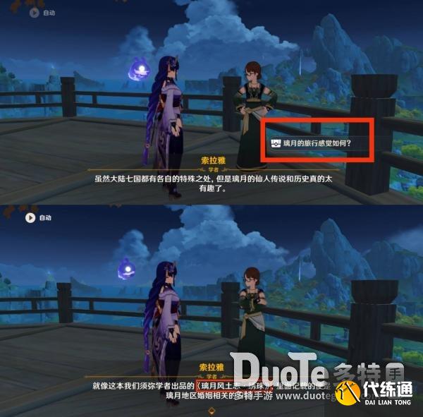 2、在传送点附近可以找到索拉雅,和她对话可以获得一本书籍:璃月风土志?绣球