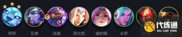 阵容成员:努努+亚索+迭嘉+瑟庄妮+蕾欧娜+永恩+布隆+巴德