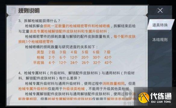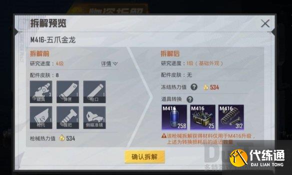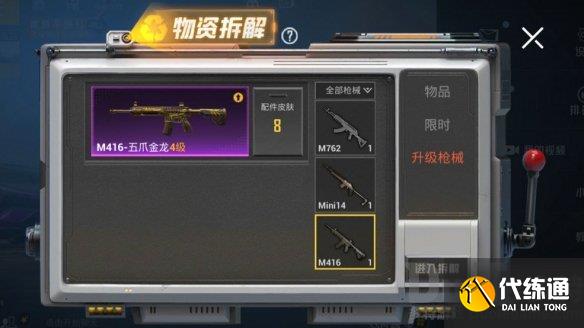 不过需要注意的是,拆解获得的专属升级材料是对应原枪械的。如,拆解M416获得的专属材料只可以用于升级M416,而不能用于升级其他枪械。