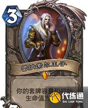 2、雷纳索尔王子是一张3费卡,可以让你在对战开始时拥有40点生命值。