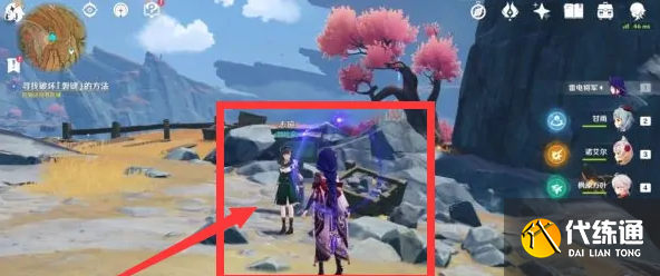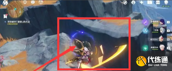 3、然后去将岩种子带到磐键旁边的笼状物中,对着磐键的方向去攻击笼状物。