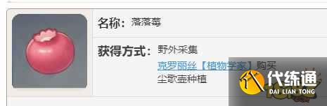 原神落落莓是蒙德地区的特产,个别角色突破需要用到的材料,它可以通过野外望风山地一带以及望风角一带采集,一般48小时刷新一次,也可以通过克罗丽丝植物学家处购买或者尘歌壶里面种植。