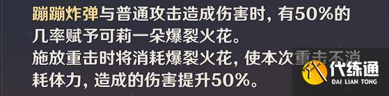 (1)目前十分契合可莉的配队,能够造成十分高频且高额的火元素伤害。