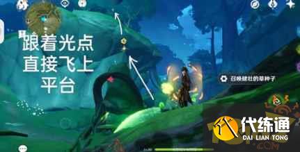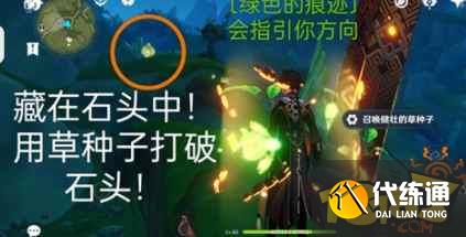 提醒:草种子附近会有绿色的痕迹指引,根据痕迹寻找相应机关,可以使用【元素视野】确认方向和位置