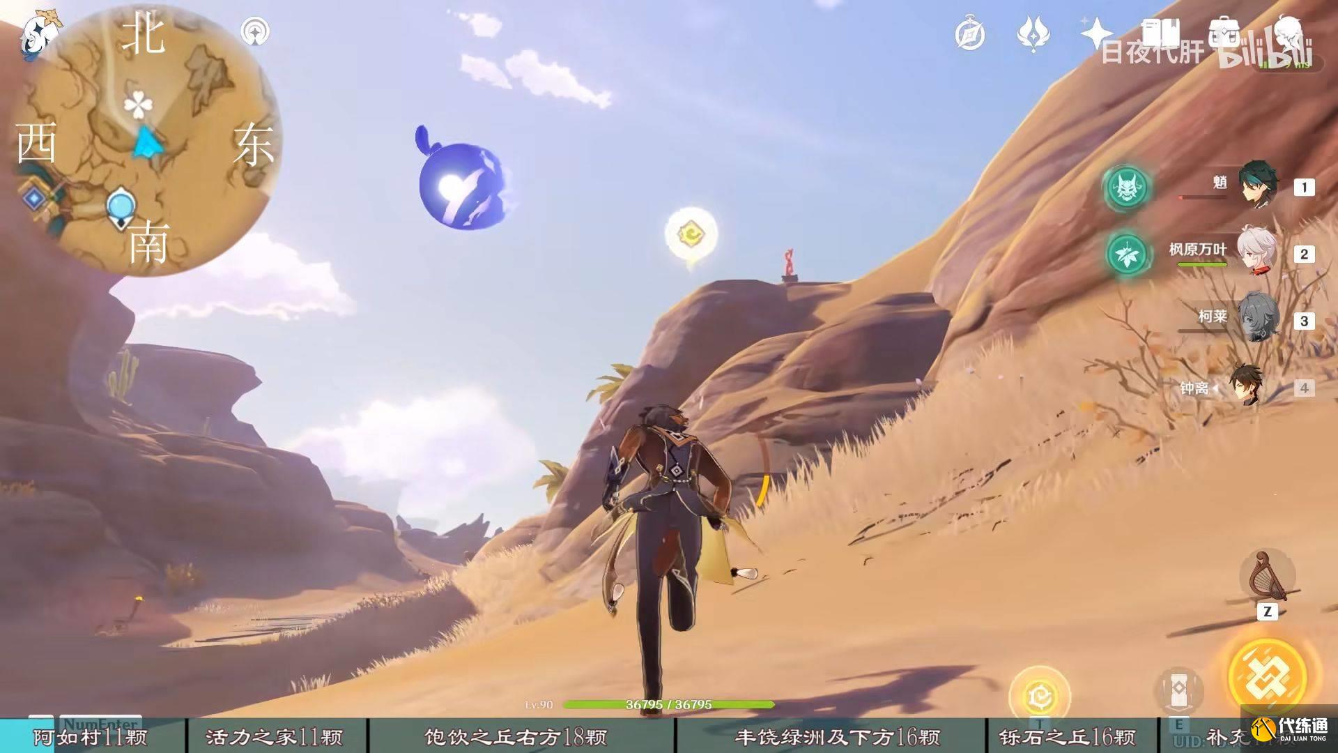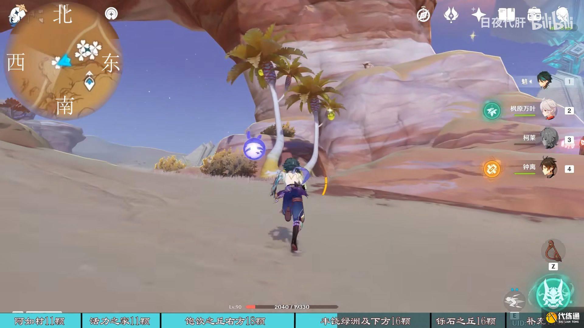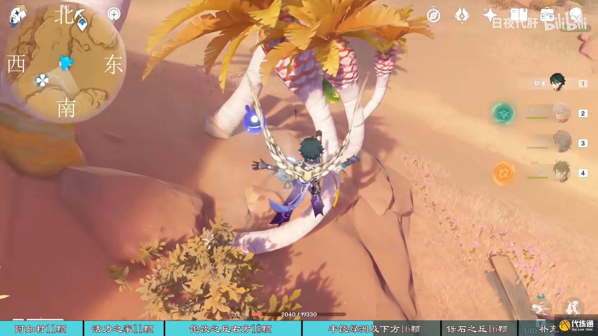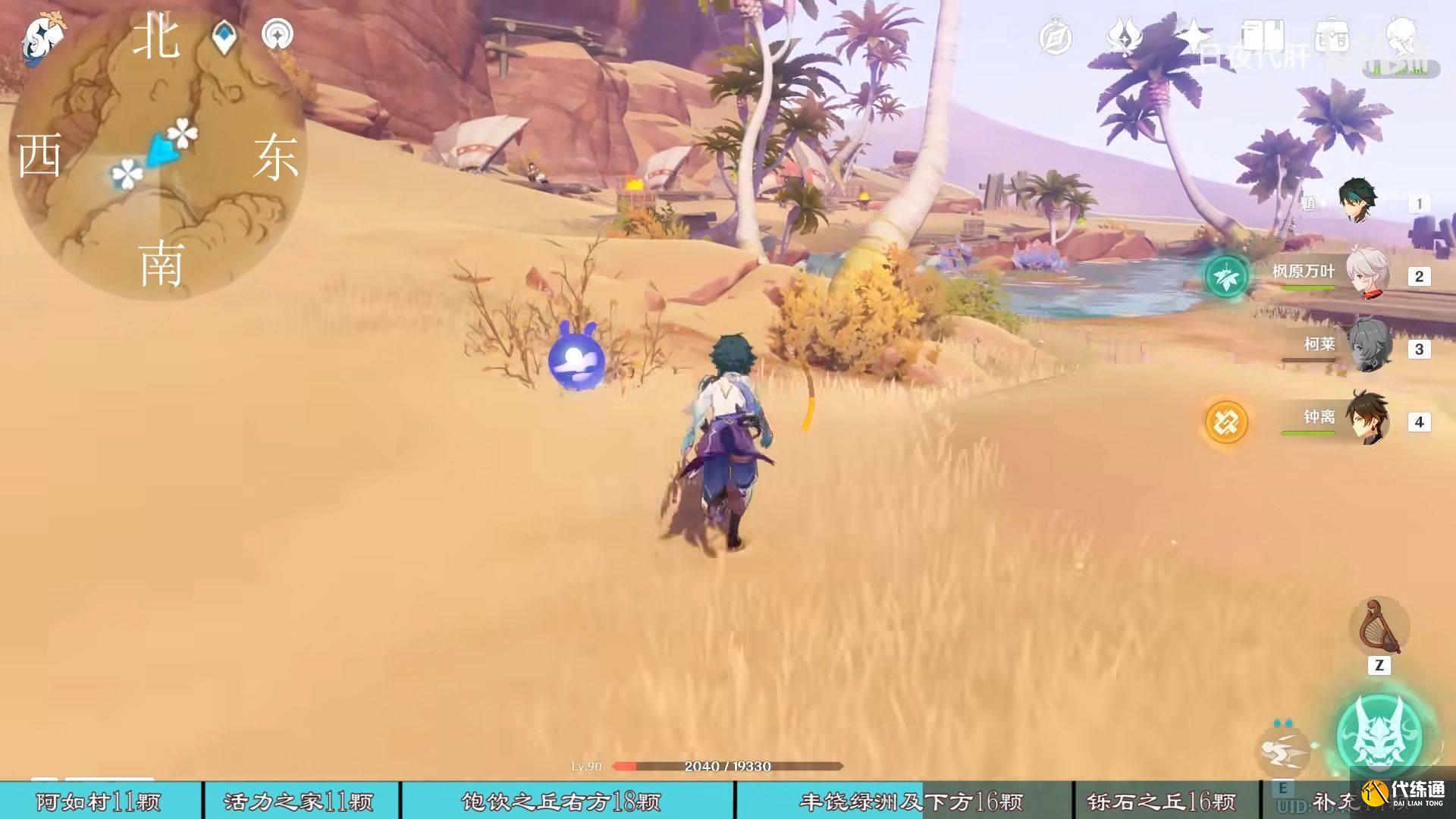 到饱饮之丘右下方的七天神像,西北方向走 用四印叶勾过去,北方向往上看有四印叶,勾过去。是个到左上绿洲的捷径。