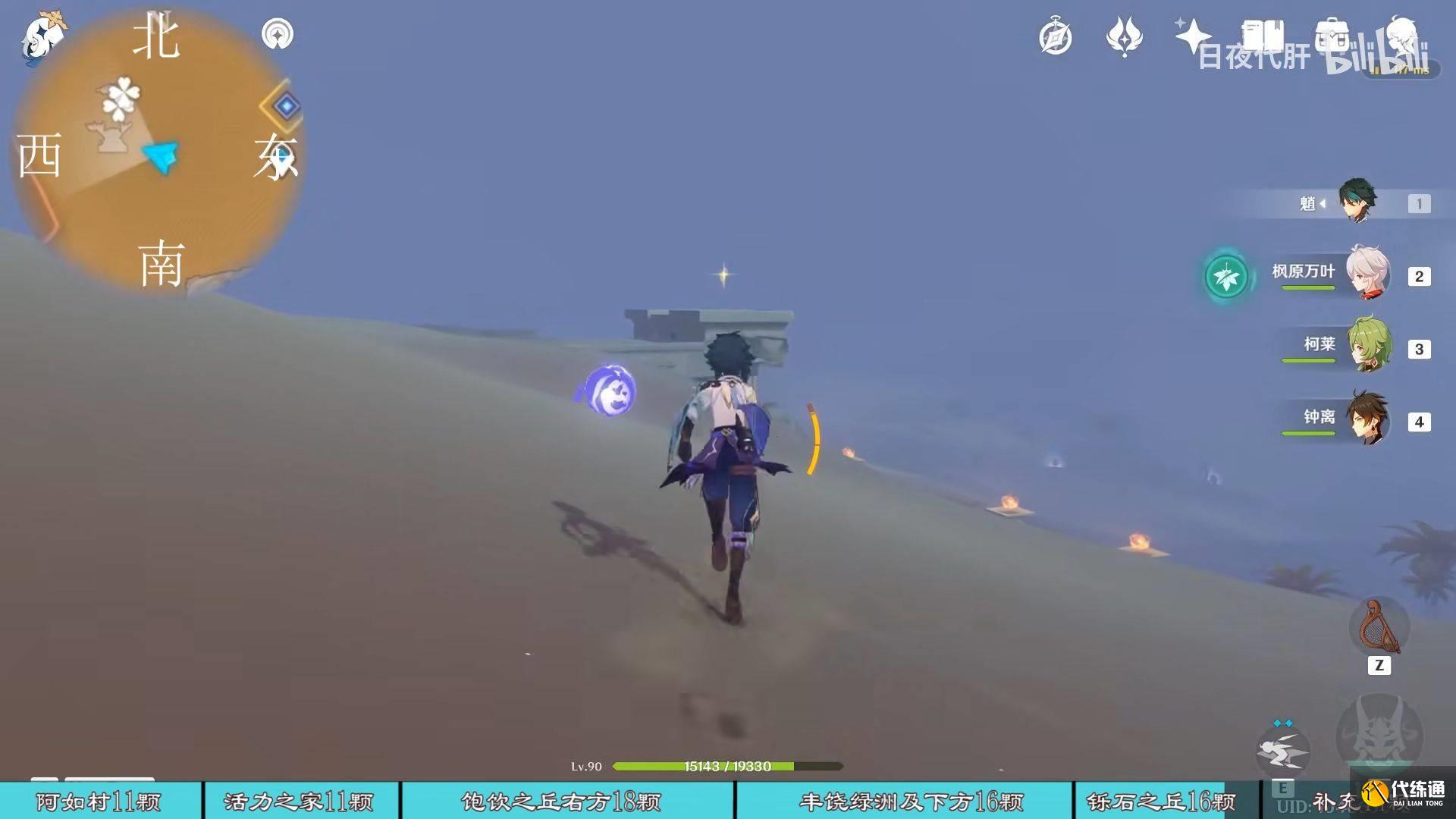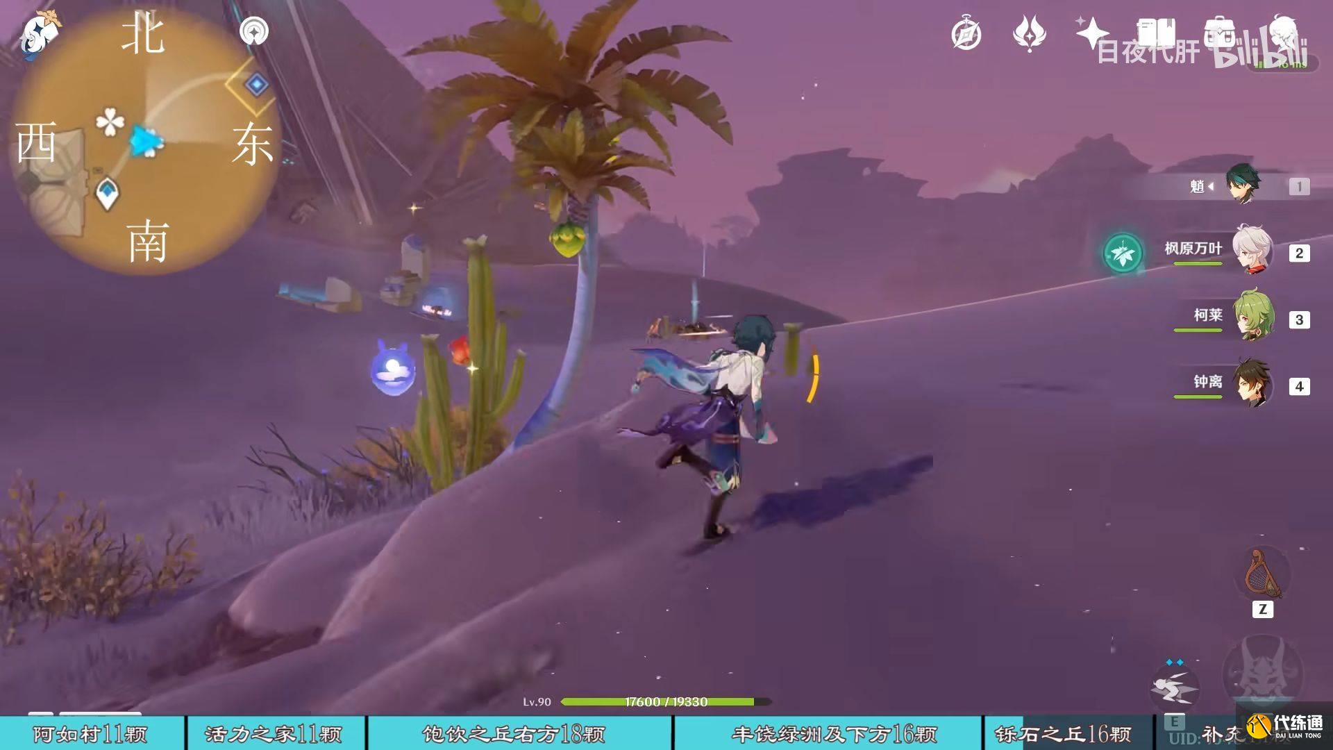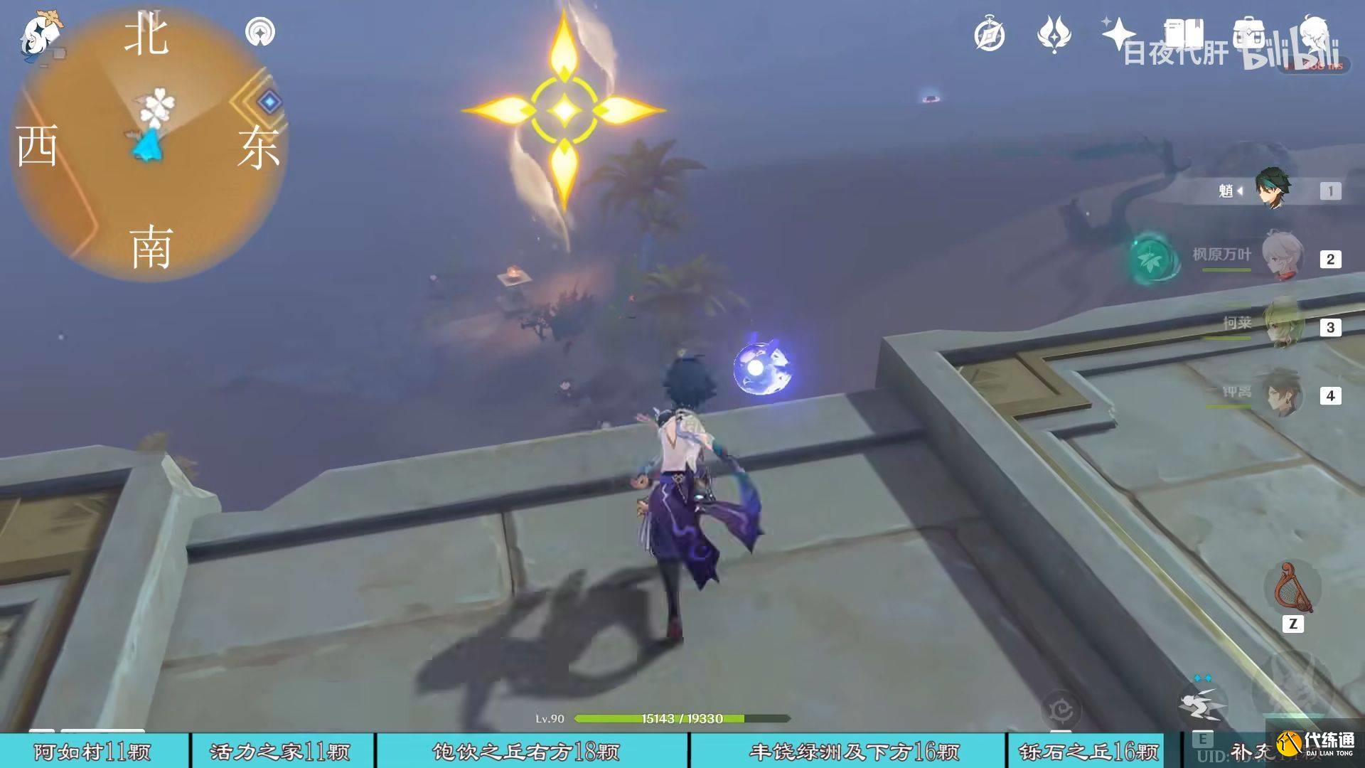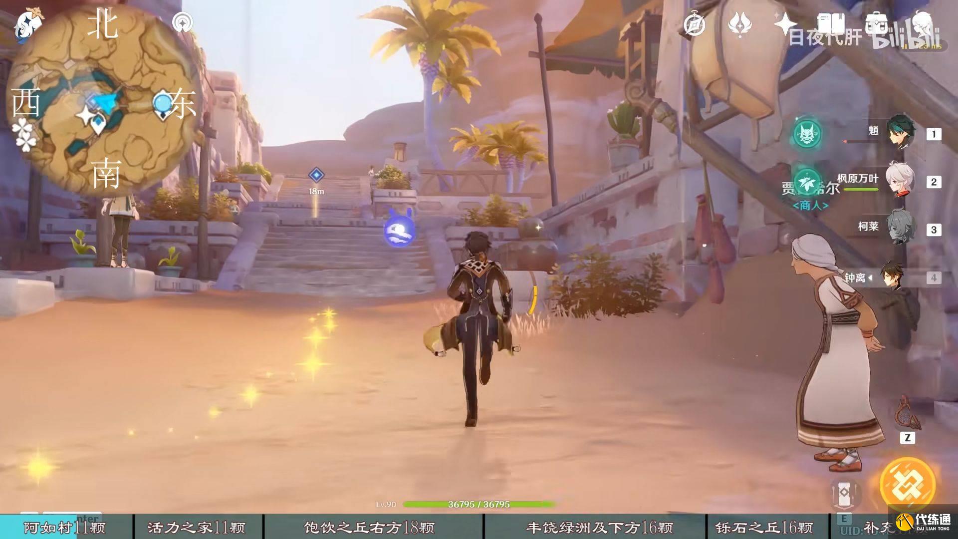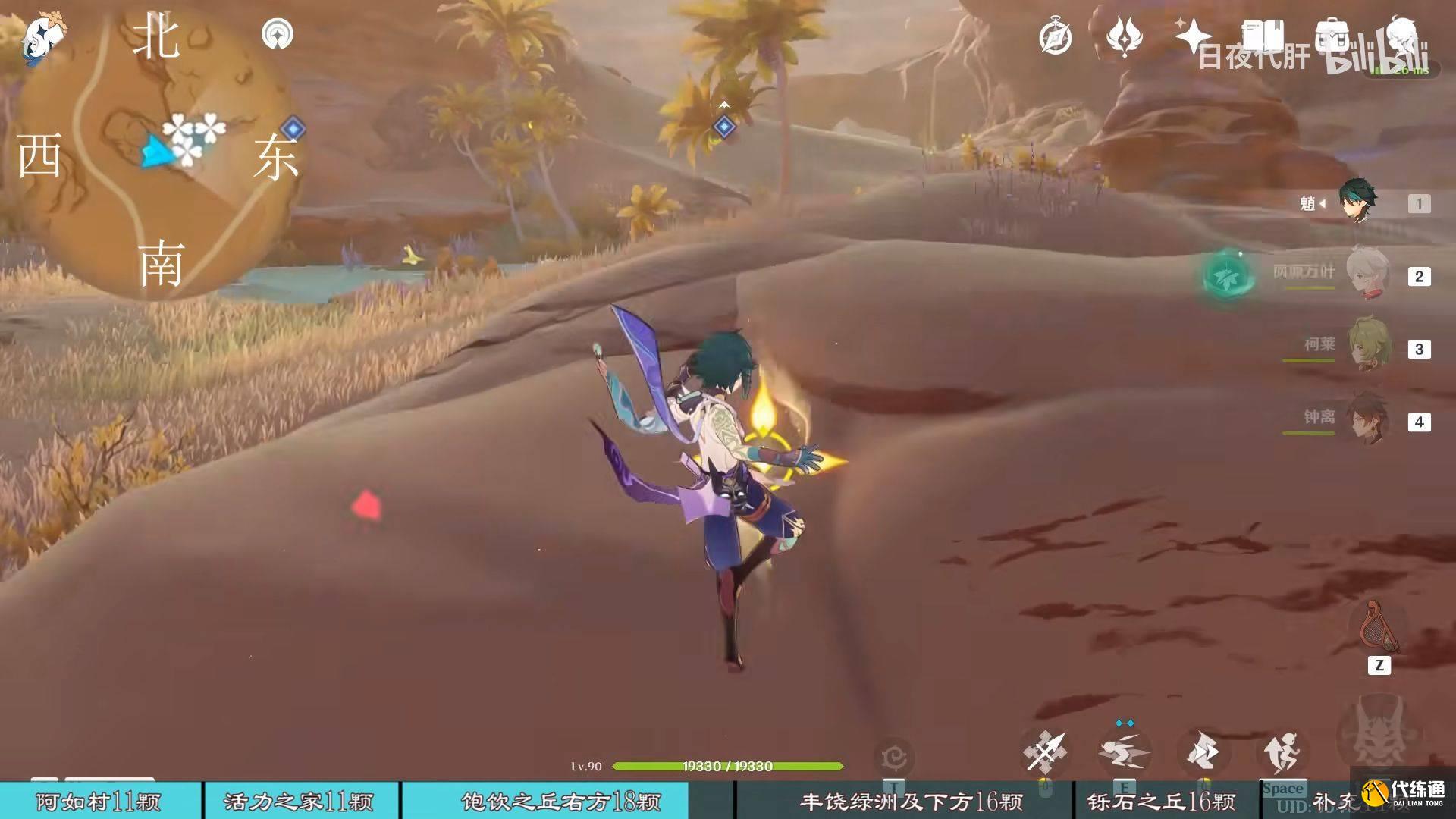 到饱饮之丘右下方的七天神像,西北方向走 用四印叶勾过去,北方向往上看有四印叶,勾过去。是个到左上绿洲的捷径。