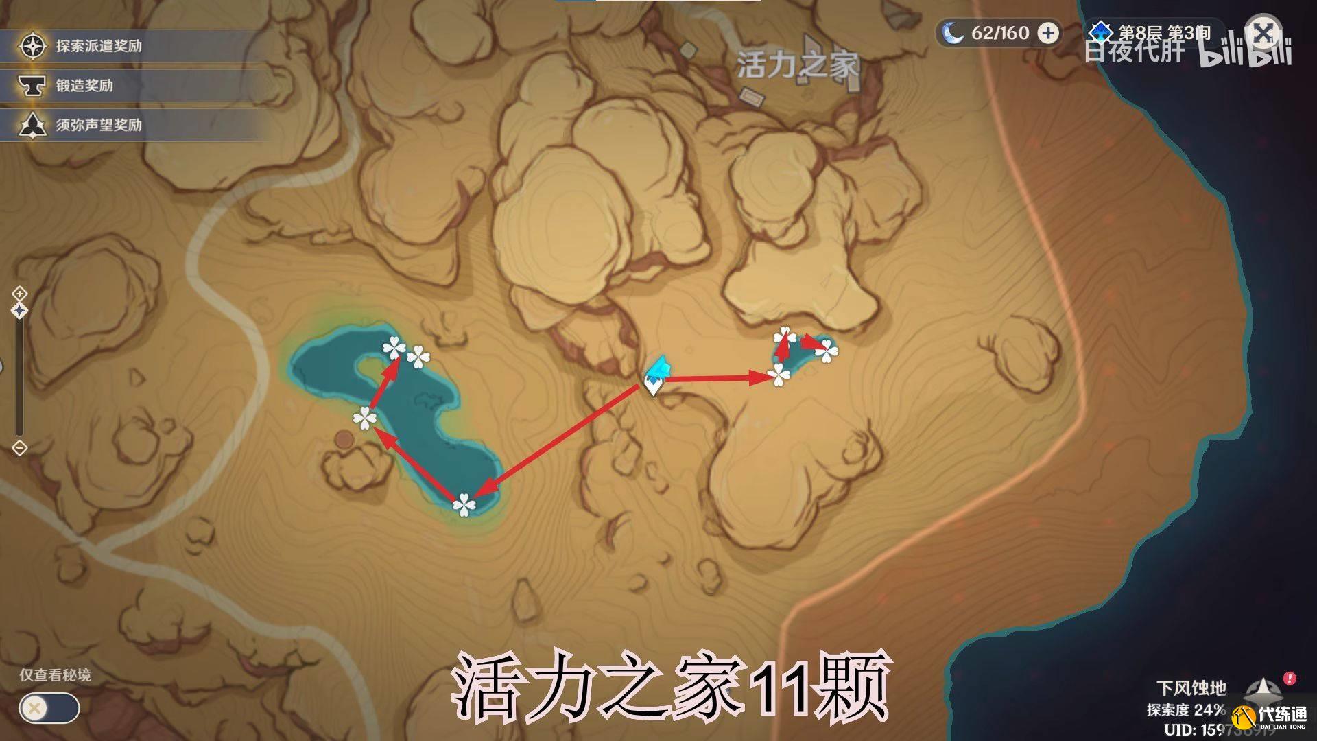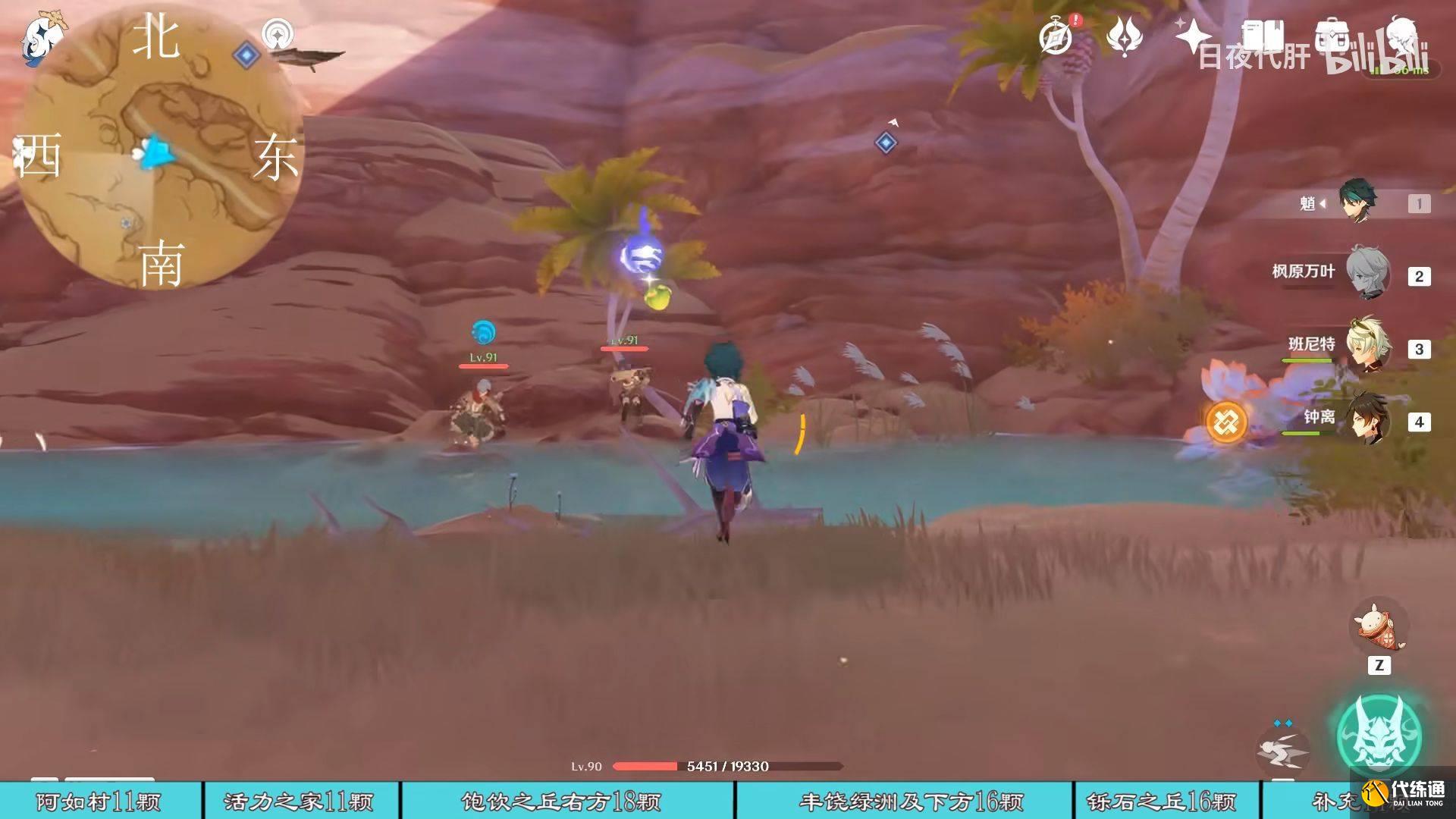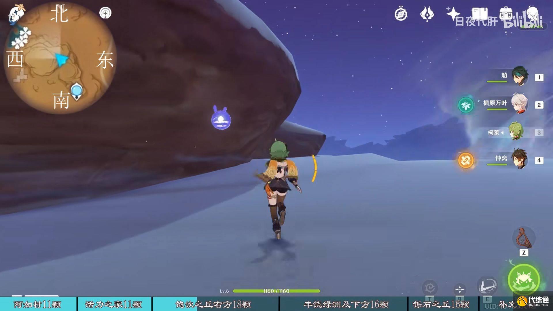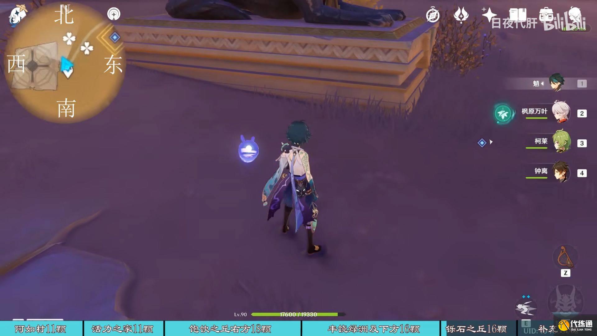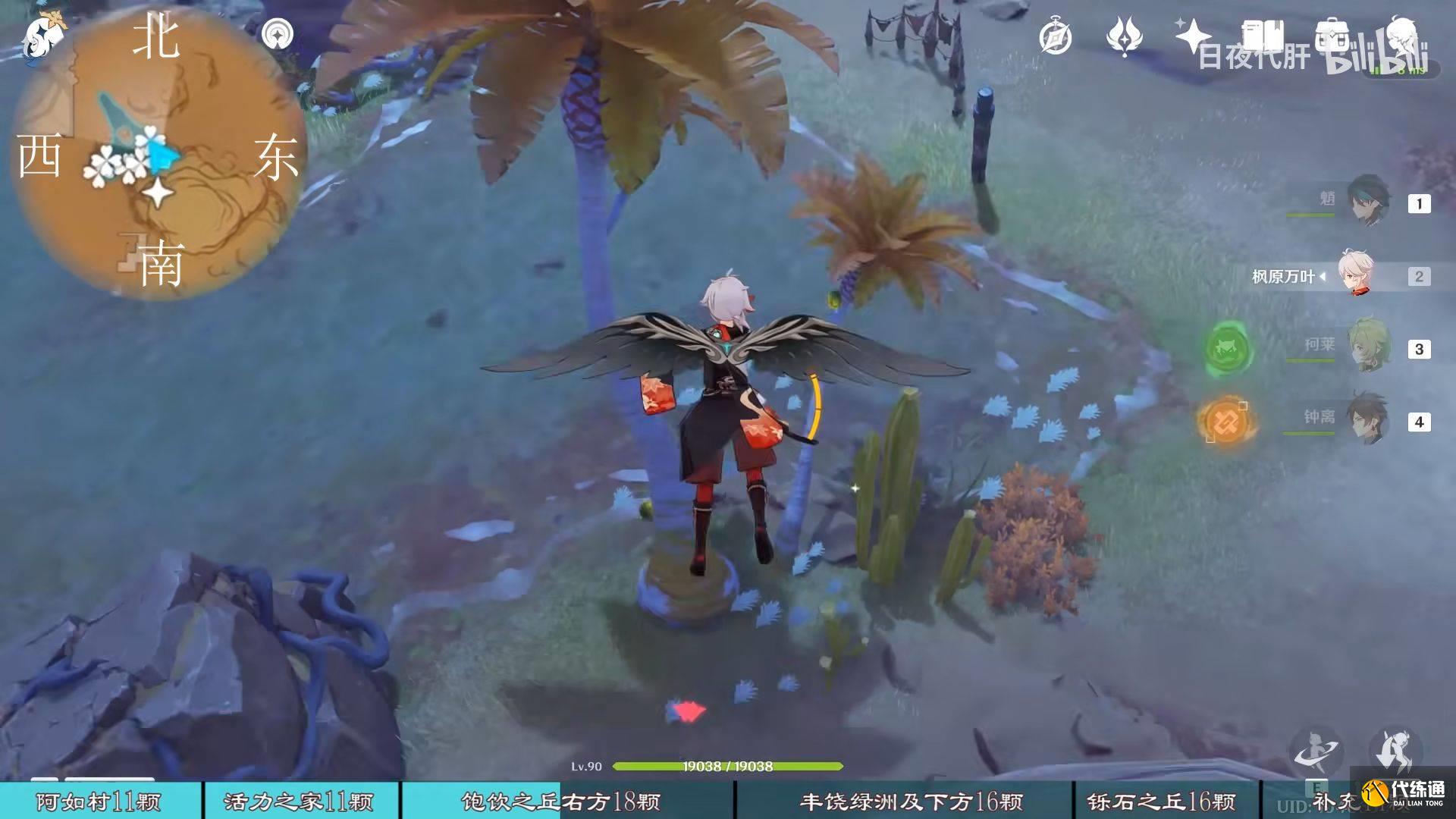 到饱饮之丘右下方的七天神像,西北方向走 用四印叶勾过去,北方向往上看有四印叶,勾过去。是个到左上绿洲的捷径。