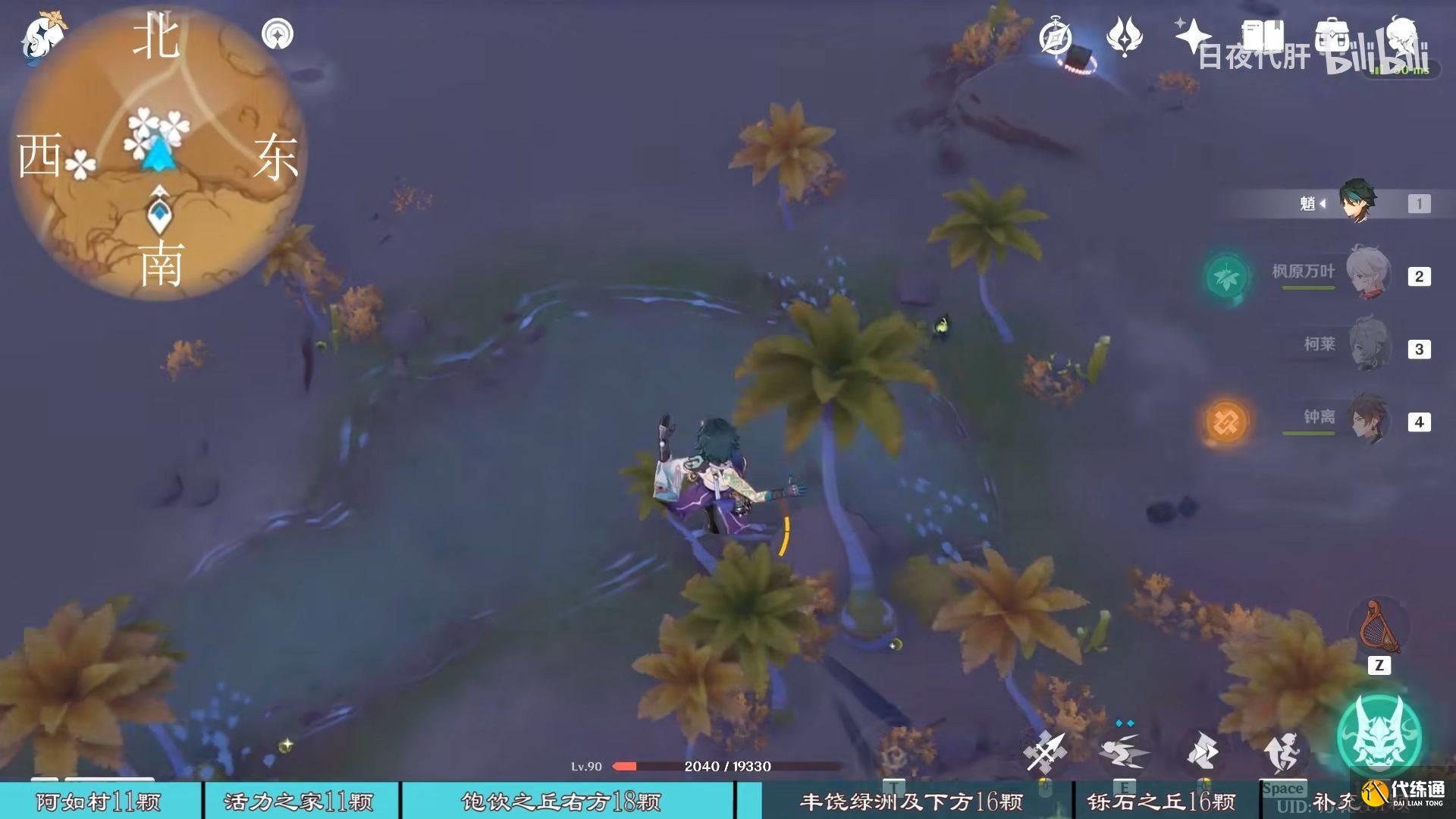 回到上个锚点,往正东方向能看到绿洲,有四印叶勾过去,可以一路勾到绿洲。(第一次见有死域,同样把死域清理后传送到很远的地方再传送回来)树上一共有3颗。