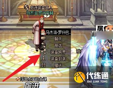 2、然后点击【马杰洛】NPC,再点击菜单中的【装备跨界】选项。