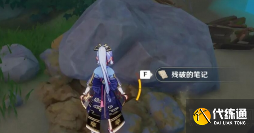 3、打碎石块堆之后,可以看到下面有一张纸条,拾取之后打开背包查看内容即可触发任务。