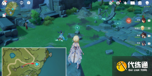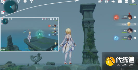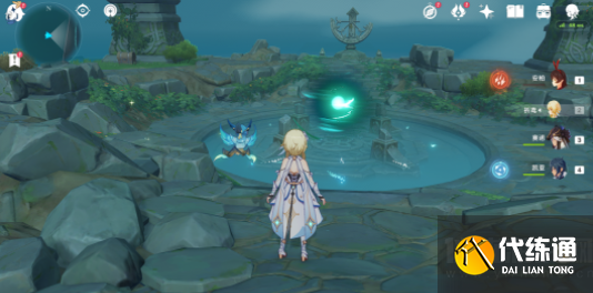 1、我们借助元素视野,寻找4个风球,并用风元素驱散它们。