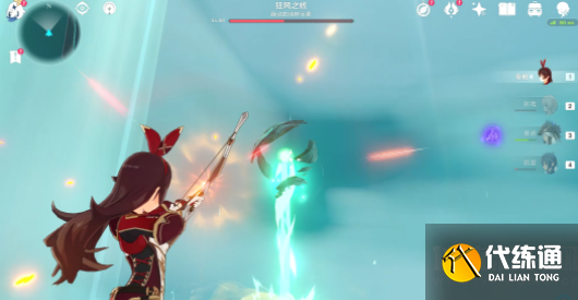 3、后有狂风之核出现,打残后逃跑,没有太多需要留意的地方,在放出风牢技能后,还是使用弓箭击落吧。