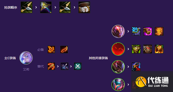 艾希刚需鬼索的狂暴之刃,如果有决斗转可以代替鬼索,二三件优选锐利之刃、卢安娜的飓风,没有就带通用物理;普朗克吃剩下的水滴、大棒;李青和墨菲特谁有希望到3,谁就优先吃剩下的腰带、魔抗、锁子甲。