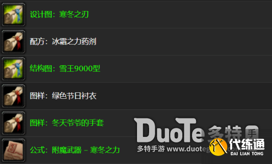 在上面我们讲到的被偷走的冬幕节礼物任务的最终奖励里面会随机开出7种图纸,这里我们来详细介绍一下。