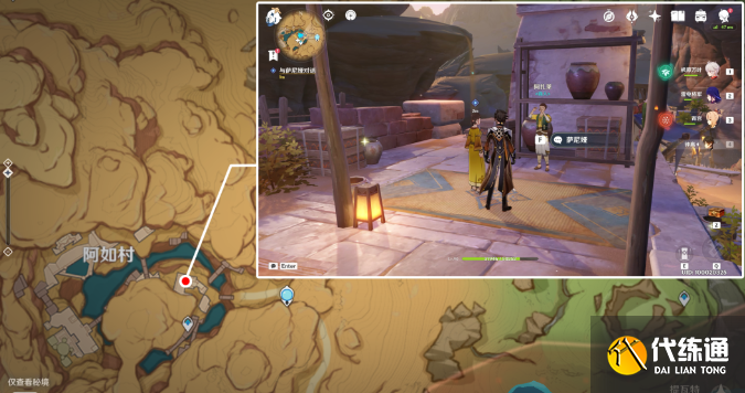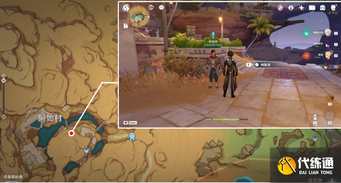 1、我们传送到阿如村的传送点,再这里我们会看到镀金旅团阿提亚,我们上前与其互动。