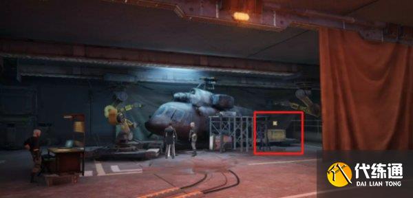 骑士委托接取处右边,机库直升机尾部,可获得宝箱:废弃的零件箱