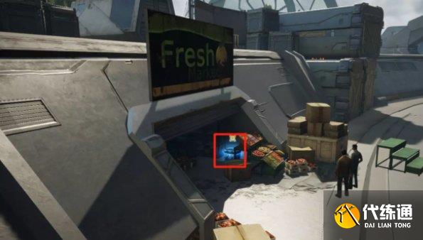 海鲜店右边水果店,右侧水果摊后可发现宝箱:多吃水果