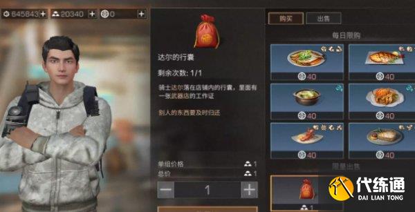 海鲜食品店购买达尔的行囊,然后前往旁边武器店,找到达尔上交物品