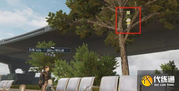 玩偶就在芙蕾后面的树上,取下玩偶交还给即可完成奇遇,无法上树的幸存者,可以尝试借助树下的凳子,也可使用无人机进行拾取噢