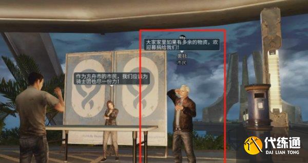 骑士广场后面大楼,大楼左侧吧台后,可获得宝箱:战后能量补给