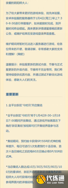 今日阴阳师游戏体验服将会进行一波更新,上线一些新活动。下面就一起来看看具体的更新内容分享吧,感兴趣的小伙伴千万不要错过哦。