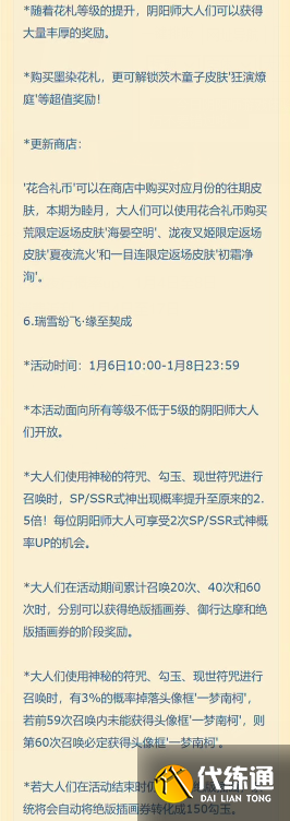 4、新式神来之前的例行骗票,1月6日至8日2次概率up