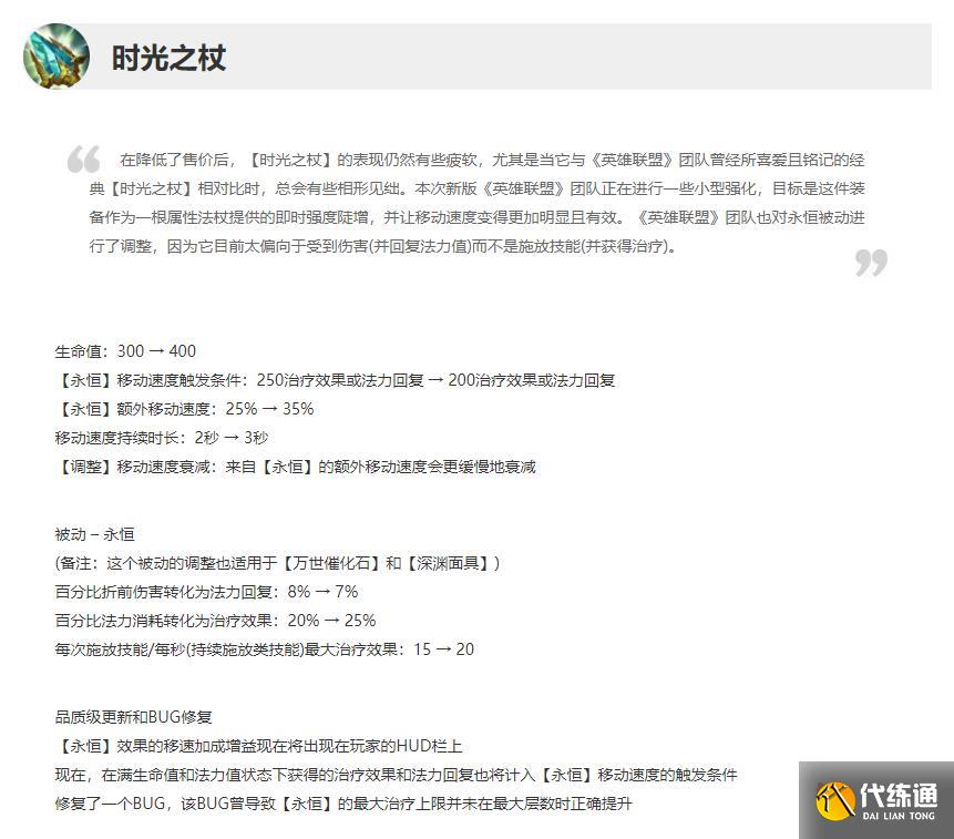 【永恒】移动速度触发条件:250治疗效果或法力回复 → 200治疗效果或法力回复