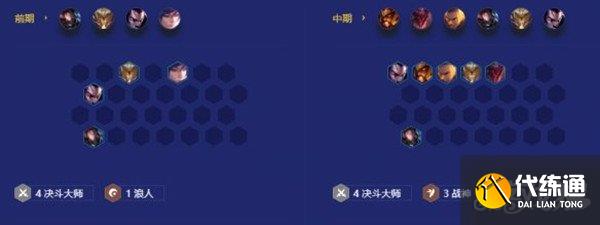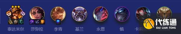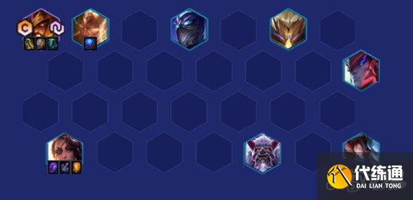 升到8级后开始大搜,搜出二星蛮王,最好是蛮王天选,因为阵容五费卡比较多,所以如果前面没来想要的五费卡可以先用其他决斗或者战神牌先用着。成型后即可锁血。