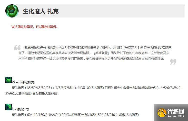 游戏《英雄联盟》国服于2023年2月14日更新了13.3版本,在该版本中设计师对扎克进行了削弱。一些玩家不知道13.3版本正式服扎克削弱了什么,小编给大家收集LOL13.3版本正式服扎克削弱一览,希望能帮到大家。