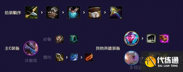 核心装做泰坦保证容错,其他两件最好是巨杀和穿甲,提高切肉能力趁早触发击杀;有羊刀或无尽也可以接受。