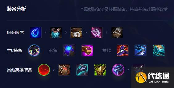阵容主C薇古丝,必备蓝霸符,可大幅度增加技能释放(朔极之矛开局不会释放技能,节奏略慢),其他两件装备法强装备就可最优帽子+珠光护手,其次巨人杀手、破法者、大天使、正义等都可考虑。
