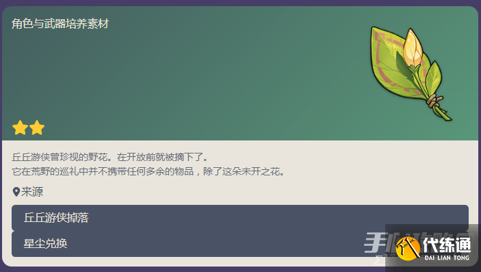 简介:丘丘游侠曾珍视的野花,在开放前就被摘下了。它在荒野的巡礼中即使并不携带任何多余的物品,除了这朵未开之花。