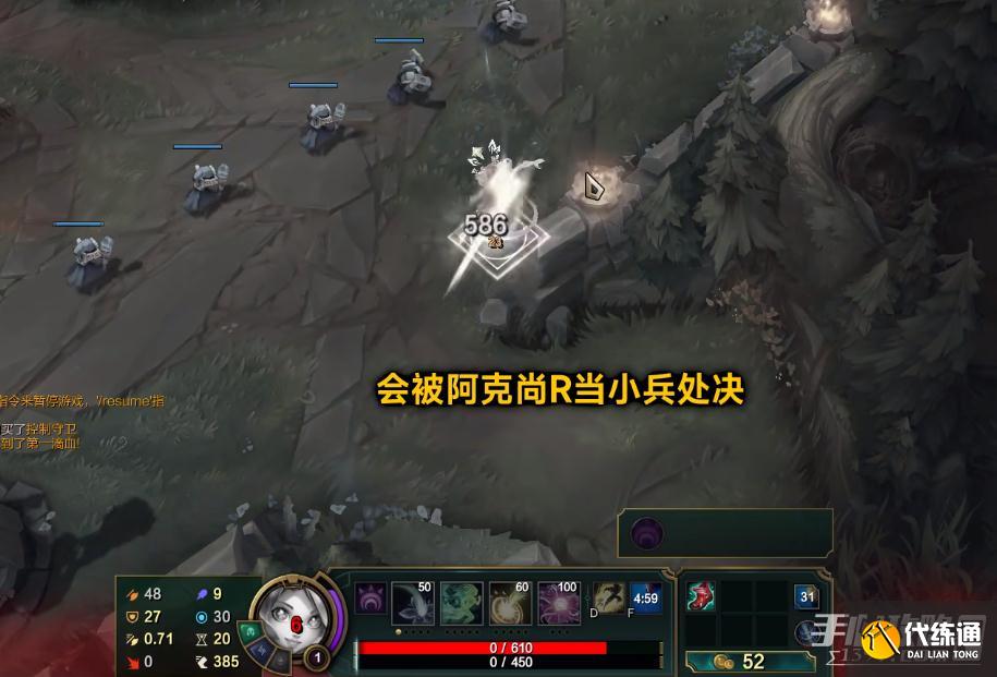 但需要注意,变小兵和野怪的缺点在于妮蔻会吃到惩戒的全额伤害,且会被阿克尚的大招处决秒杀。妮蔻可以通过变身眼石和野区植物来规避阿克尚大招。