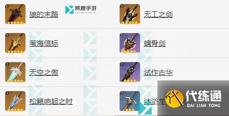 【狼的末路】>【苇海信标】>【天空之傲】>【松籁响起之时】>【无工之剑】>【螭骨剑】>【试做古华】>【沐浴龙血的剑】