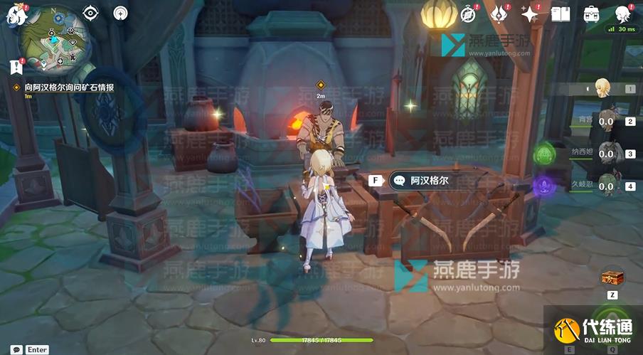 9、返回须弥城,找铁匠[阿汉格尔],询问矿石情报。