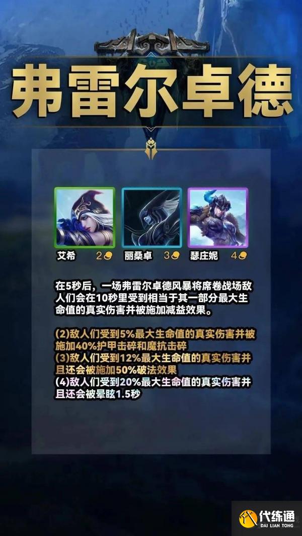 金铲铲之战是一款自走棋类型的竞技对战手游,在游戏里面玩家可以看到新赛季的羁绊会以阵营和职业进行推出,作为当前赛季人数最少的弗雷尔卓德她们有什么羁绊呢,下面就让我们来看看金铲铲之战S9弗雷尔卓德羁绊效果介绍。