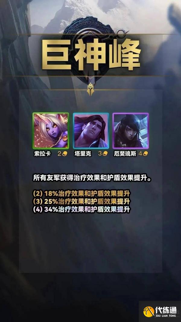 巨神峰 就是老白魔羁绊,全队加治疗和护盾效果,没什么好说的
