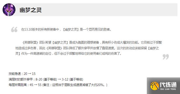 游戏《英雄联盟》上线了13.11版本正式服。在该版本中设计师针对幽梦之灵进行了削弱,一些玩家不知道13.11版本正式服幽梦之灵削弱了什么,小编给大家收集LOL13.11版本正式服幽梦之灵削弱一览,希望能帮到大家。