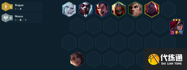 2、中期上卡特和任意潜行凑出潜行羁绊,提高质量,同时合成诺克萨斯专职