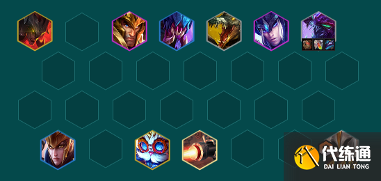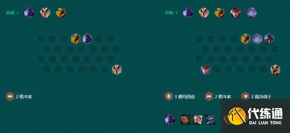 格斗家全部第一排,凯尔和科加斯站同边,一是让科加斯帮凯尔顶伤害,二是尽可能多的让科加斯叠层数。注意凯尔旁边不要放远程,免得被嘉文四世或者黑默丁格控。