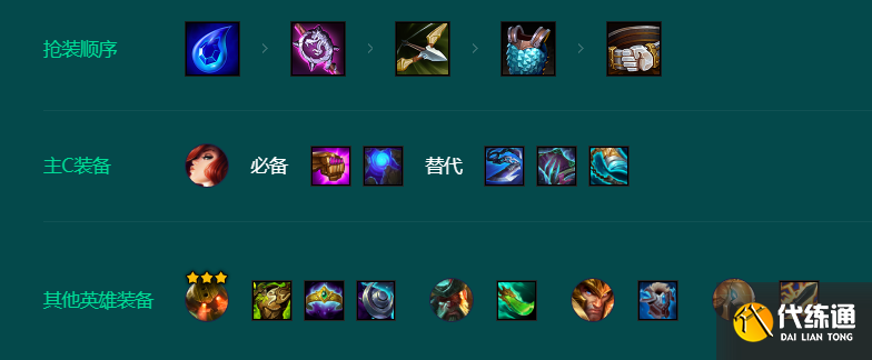 女枪装备不是唯一的。但是回蓝装是必须的。蓝buff+鬼书的组合也是可以的。泰坦推荐用法袍,能够提高前排坦度的同时削减魔抗。