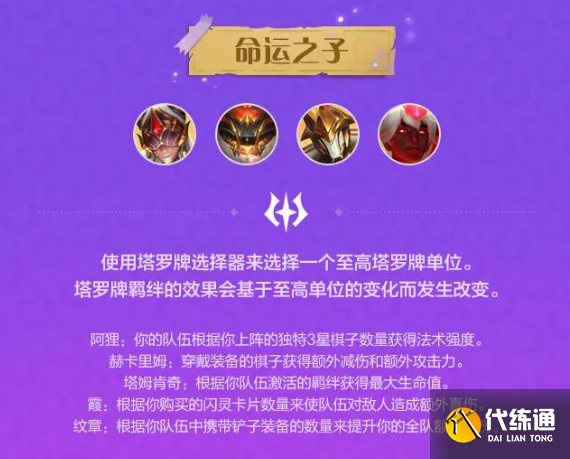 使用塔罗牌选择器来选择一个至高塔罗牌单位。塔罗牌羁绊的效果会基于至高单位的变化而发生改变。
