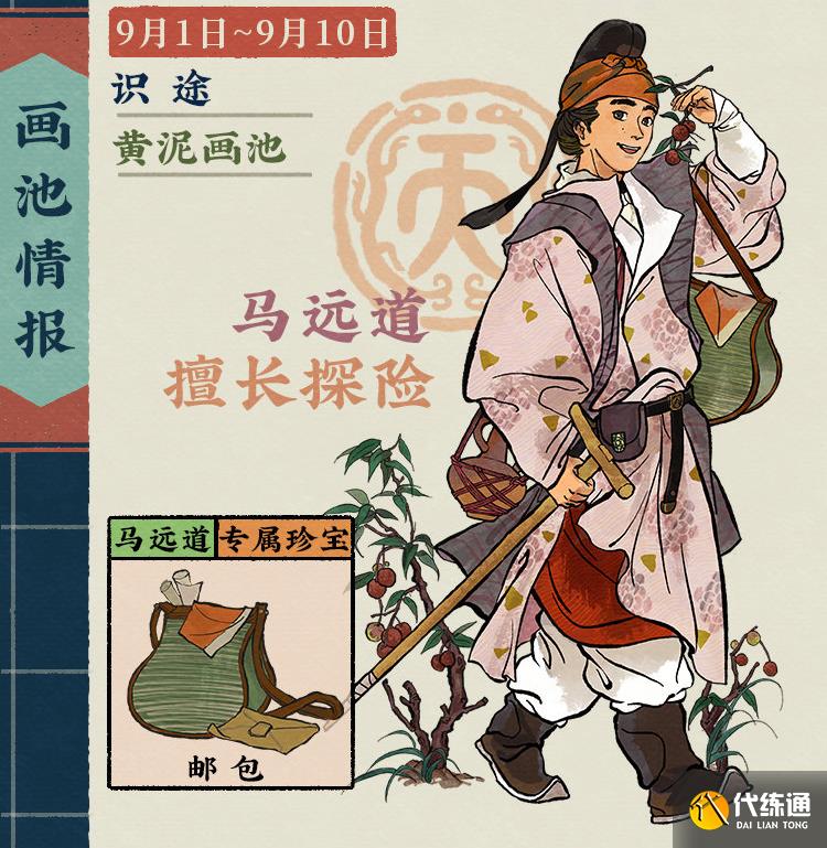 画池内抽取「马远道」的概率提升。消耗「黄泥*150」可直接兑换角色:「马远道」。画池内可抽取马远道专属珍宝「邮包」。