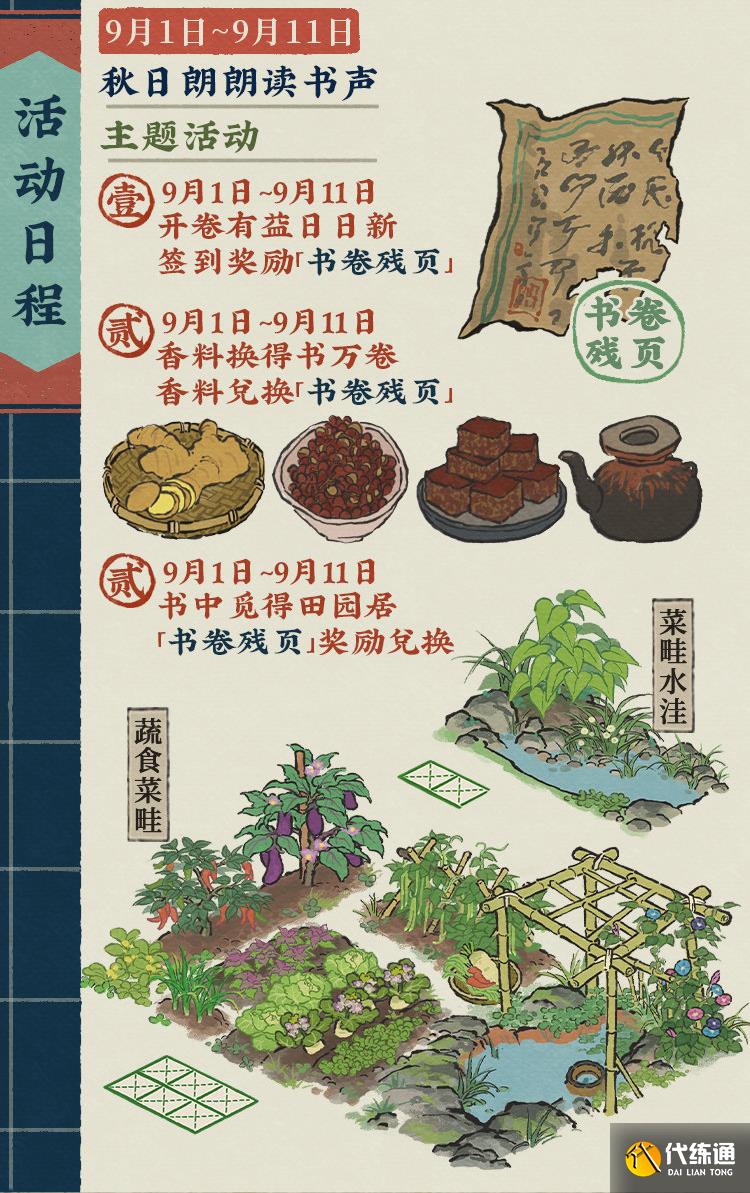 参与系列活动、收集「书卷残页」可兑换建筑「蔬食菜畦」等多重奖励!