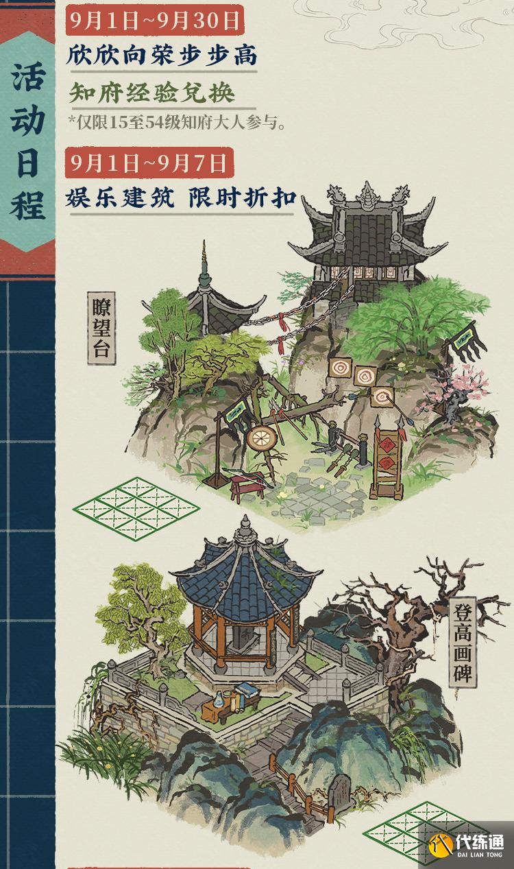 限时优惠开启!建筑「瞭望台」及「登高画碑」开启限时折扣,喜欢这两个建筑的知府不要错过~