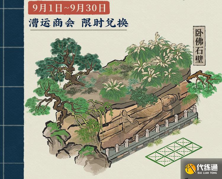 扬州府漕运商会上架4*2建筑「卧佛石壁」,消耗「连票」即可兑换获得。