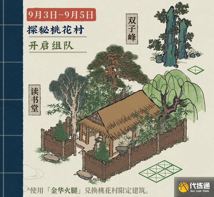 同乡会馆开启组队!结算期间前往八珍馆寻找「神秘嘉宾」,可消耗「金华火腿」兑换获得桃花村限定建筑,本期建筑「读书堂」及「双子峰」刷新概率提升。